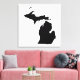The shape of the state of Michigan in black and white. Change the background colour or add a custom souvenir text message.