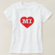 This t-shirt features a vibrant red heart containing the bold, white, upper case letters MI, the official abbreviation for Michigan, the Great Lakes state.