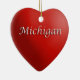 A graphic of red heart on a Michigan heart ornament. The ornament has templates for your text. Note: The 3D effect is the image-the ornament is flat. ©2013charmainepaulson.
