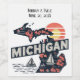 This stylish bottle label features a retro style scenic Michigan state silhouette along with customisable text at top, which can be personalised for weddings, family reunions and more.