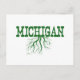 Michigan Rooted with Green Tree Roots Word Art Postcard