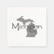 Featuring the outline map shape of the mitten state of Michigan with the states name written across the front these simple and classy Michigan state paper party napkins are perfect for any cocktail party in the state of Michigan.