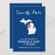 Michigan State Map with Custom Love Heart and Name Save The Date