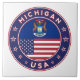 Badge of Michigan with flag of Michigan and flag of USA colours, rounded shape.