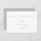 A wedding Save the Date that is done in white and grey typography with just enough information to win the day. This item is part of a wedding collection that includes your choice of invitation, an RSVP card, Save the Date, and more. Place your information on this card, add it to your cart, and have a wonderful wedding.