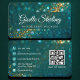 Professional green and gold business card for microblading and permanent makeup artists featuring a QR code layout. Designed so clients can easily book appointments, view before and after work, or save your contact details with a quick scan. Ideal for microblading studios, PMU artists, beauty professionals, and client referrals. Editable text and QR destination. Clean print-ready layout.