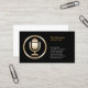 This simple voiceover artist business card features a jet black background with a gold microphone icon on the left side of the card, while your name, title and contact details appear on the right. Designed for entertainment, entertainer, party, fun, kids, children, gatherings, parties, dance themes.