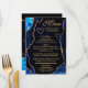 Mid Blue and Gold Glitter Agate Marble Wedding Menu