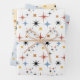 Vintage 1950s mid-century modern style atomic star pattern wrapping paper in gender-neutral colours, suitable for any occasion.