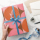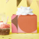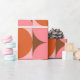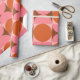 This is Minimalist Geometric Mid century modern abstract orange circles and pink half circles on dark and light squares .