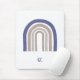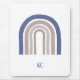A mid-century inspired design of abstract arches in a calming blue and beige colour palette. Personalise with initials.