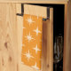 This is elegant mid century retro atomic starbursts pattern on orange background . It's great looking kitchen towel for women who love retro mid mod designs