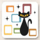Colourful abstract Mid Century style illustration with black cat, black stars and colourful cubes decoration on white background. You can add your name/monogram to personalise the item.
