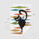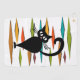 Colourful abstract Mid Century style illustration with black cat and colourful rhombuses decoration on white background