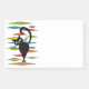 Colourful abstract Mid Century style illustration with black cat and colourful rhombuses decoration on white background