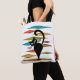 Colourful abstract Mid Century style illustration with black cat and colourful rhombuses decoration on white background