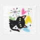 Colourful abstract Mid Century style illustration with black cat, black stars and colourful geometric shapes decoration on white background