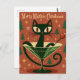 Mid Century Black Cat Merry Martini Christmas Postcard