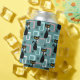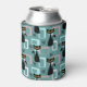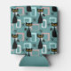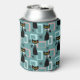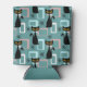 Colourful abstract Mid Century style pattern with black cat, black stars and colourful (blue, white, pink) cubes decoration on turquoise background for every cat lover, cat mum and cat dad.