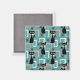 Colourful abstract Mid Century style pattern with black cat, black stars and colourful (blue, white, pink) cubes decoration on turquoise background for every cat lover, cat mum and cat dad.
