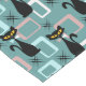 Colourful abstract Mid Century style pattern with black cat, black stars and colourful (blue, white, pink) cubes decoration on turquoise background for every cat lover, cat mum and cat dad.