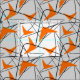 Orange retro boomerang pattern on a grey background.
