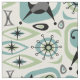 My original vector illustration of mid century style abstract cats, cubes, starbursts, boomerangs, lozenges, and more, in turquoise, green, grey, and black on off white/tan.