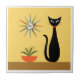 Mid Century Cat with Starburst Clock on Yellow Tile