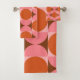 Mid Century Circles and Squares Pink Orange Bath Towel Set