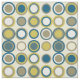 This funky retro style mid-century fabric features circles of tan, white, two shades of blue, and yellow. This is sure to be an eye catcher in your sewing or quilting project!