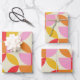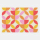 Add bright retro vibes to your gift wrap with this wrapping paper sheets featuring mid century abstract semi circles and circle leaf shapes pattern in bright colors like orange, mustard yellow, red and pink.