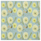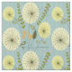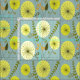 Pretty mid-century modern dandelions and green leaves on greenish-grey background.