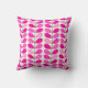 Throw pillow in a Mid-Century Modern Danish inspired textile pattern of stylised leaves - shades of pink, from pastel pink to deep fuchsia / hot pink, on a white background