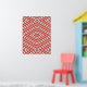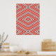 Poster in a mid-century modern, repeating diamond pattern in stripes of coral pink, black and white