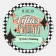 Fifties Party Stickers features mid-century modern sign style typography of "Fifties Party''. This design includes elements of mint green, orange, black and white, chequered pattern, polka dot background, retro shapes, stars and designs inspired by the 50's. Include a template for personal customisation.