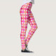 Leggings in a Mid-Century Modern geometric print of giant dots, in a grid of nine coordinating colours - shades of fuchsia, coral pink, coral orange, mauve and buff, on a white background