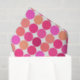 Tissue paper in a Mid-Century Modern geometric print of giant dots, in a grid of nine coordinating colours - shades of fuchsia, coral pink, coral orange, mauve and buff, on a white background