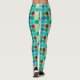 Leggings in a Mid-Century Modern geometric print of giant dots, in a grid of nine coordinating colours - shades of turquoise, peacock, seafoam green, mint, chocolate brown and off-white, on a light silver grey / grey background