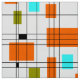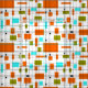 Mid Century Retro grid pattern with orange, olive and aqua blocks