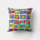 Mid-Century Modern Pillow funky abstract squares and circles in a brightly colourful design. Back of pillow in coordinating design. Perfect for any mid-century modern home.