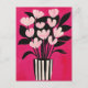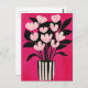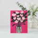 Striking magenta petals bloom from a classic black-striped vase on a light mint background for vibrant vintage cool.