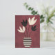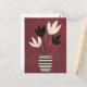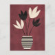 Rich plum petals rise in a cream-striped vase with thick outlines on a delicate yellow chiffon background—soft yet graphic.