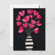 Striking magenta petals bloom from a classic black-striped vase on a light mint background for vibrant vintage cool.