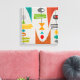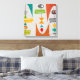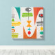 Mid-Century Modern Wrapped Canvas, colourful funky abstract squares and moon shapes in shades of orange, gold, avocado and teal and grey. A perfect addition to your mid century style.