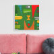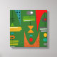 Mid-Century Modern Wrapped Canvas, colourful funky abstract squares and moon shapes in shades of orange, gold,  avocado and teal and grey.  A perfect addition to your mid century style.