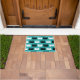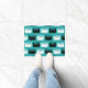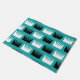 A 20th century atomic era styled abstract art pattern with geometric flower petals. Colours are black, white and teal / turquoise.