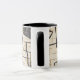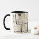This Mid Century Modern Abstract Fabric Mug features a replica of a vintage 1950's fabric. The background is ecru with black and gold lines. The fabric also features grey and pink modern art shapes. It's a blast from the past! This is the perfect design for anyone who loves items with a retro feel.