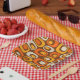 Retro 60s Mod Futuristic Bubble Pattern in Brown Orange and Yellow.