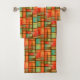Mid Century Modern Abstract Plaid Blue Green Red Bath Towel Set