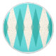 This Mid Century Modern Argyle Ceramic Pull features a vibrant, turquoise background and a pattern of mod, translucent teal diamonds overlaying larger, vintage cream diamonds with gold coloured, space age speckles. This minimalist inspired, deconstructed argyle is a simplistic throwback of the larger than life atomic era that dominated the decorating landscape of the 1950s and 1960s. This kitschy design is reminiscent of everything from retro Palm Springs’ bowling alley signs to the television trays you used at your grandma’s house.
